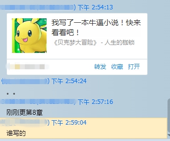 更有小伙伴写出了贝克梦同人小说!!还有要给新手小白写攻略老司机训练家,大家在交流心得的同时不断分享着自己的精灵,顺带说一下还有人在夸啾咪可爱呢!!!