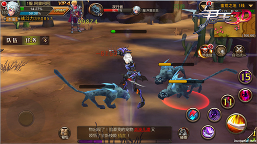 沙漠里除了恐龙,还有各类魔族狂兽。注意了!暗影豹正躲在蛮荒之地的阴影里对你虎视眈眈,长长的尾巴竖了起来——那是冲锋的号角,它们会像狼群一样将你团团围住,不给片刻的喘息之机。